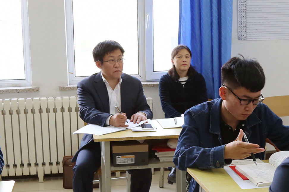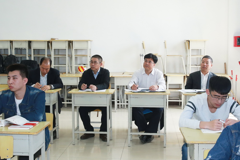会后,在王喜库书记、曹炳志院长、徐彤宝副书记和教务处处长张辉、质量监督处处长王学明、思政部主任李晓平的陪同下,调研组深入到学生班级进行听课,分别随机听了由黄金双、王效为、常晓天、王忆四位老师讲授的思政课。