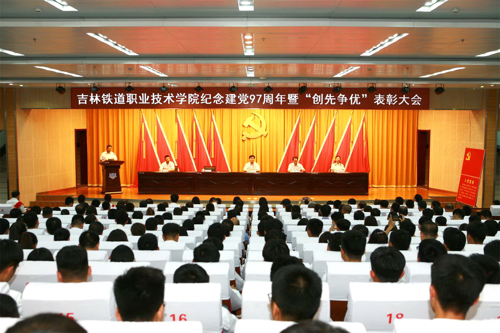 学院党委书记王喜库发表题为《砥砺奋进勇于担当永葆中国共产党人的初心和使》的讲话。在讲话中,他与大家共同回顾了中国共产党97年走过的光辉历程,并告诫全体同志“不忘初心、牢记使命”,做到旗帜鲜明讲政治,信仰坚定讲原则做到纪律合格讲规矩,尽职尽责讲担当做到风清气正讲品行,知行合一讲德行。他从扎实推进“两学一做”学习教育常态化制度化,深入开展“党建工作质量年”行动;持续推进“五创五强”工程建设,实现党组织建设工作全面提升;持续加强思想政治工作经常化,着力做好育人工作和人才管理全面提升;着力强化构建巡整改常态化机制,不断打造风清气正的校园文化生态;全面推进依法治校,强化落实安全稳定工作责任制,着力打好扶贫脱贫攻坚战等五个方面对做好当前党建各项工作提出了具体要求他强调指出,今年正值学院建校70周年,站在新时代的坐标上温故知新,我们要以历史的思维落实新时代的思想。学院因贡献解放事业而生,因服务铁路事业而强,因进入新时代而振兴发展。70年峥嵘岁月,从早期筚路蓝缕、开基创业,到今年的“三大攻坚”,我们昂首阔步地朝着学院的发展目标前进。几代吉铁院人,始终以共产党人的理想和坚定步伐,勠力同心、砥砺奋进。这其中有一条贯穿始终、颠扑不破的道理,那就是吉铁院的事业是在党的领导下,大家为了共同的理想而艰苦奋斗出来的。